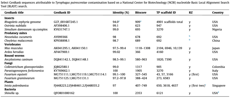 Genomic and metagenomic analyses of the domestic mite Tyrophagus putrescentiae identify it as a widespread environmental contaminant and a host of a basal, mite-specific Wolbachia lineage (supergroup Q).