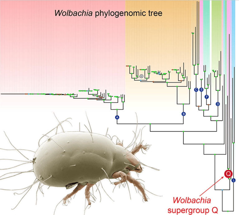 Genomic and metagenomic analyses of the domestic mite Tyrophagus putrescentiae identify it as a widespread environmental contaminant and a host of a basal, mite-specific Wolbachia lineage (supergroup Q).