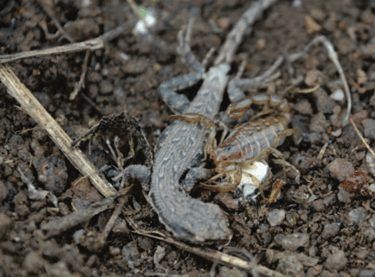 At 1900 h on 19 June 2016, in La Majadita, Valle Fértil, San Juan Province, Argentina (30.70014°S, 67.49906°W, WGS 84; 978 m elev.), we discovered a juvenile female Liolaemus chacoensis (SLV = 39 mm) being preyed upon by a scorpion, Urophonius brachycentrus. The two were under a log, with the lizard, undigested, clutched in the scorpion’s pedipalps.