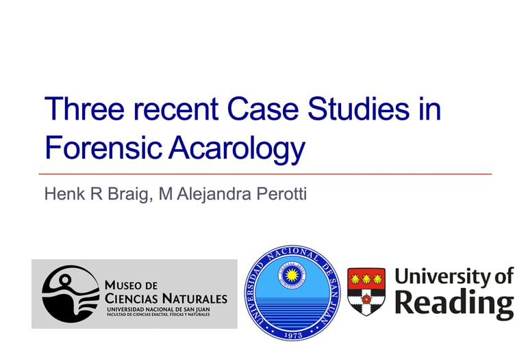 This presentation highlights three recent case studies in forensic acarology. Two cases demonstrate the power of mite biodiversity as a forensic tool, while one focuses on life history features. The latter case is notable not for estimating the overall post-mortem interval, but for clarifying the length of a specific stage of decomposition. Despite the short generation times of mites, this case illustrates their capacity to inform estimations spanning long periods—even years.